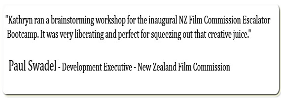 "Kathryn ran a brainstorming workshop for the inaugural NZ Film Commission Escalator Bootcamp. It was very liberating and perfect for squeezing out that creative juice."